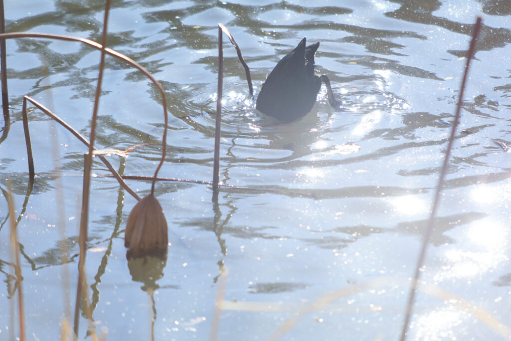 夏にはハスが一面に咲いている池に、この時期は鳥たちが集っているのだ。