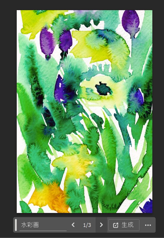 ●コンテキストタスクバー[生成塗りつぶし]をクリック→プロンプトを入力(今回は「水彩画」)→[生成]をクリックまたは[Enter]