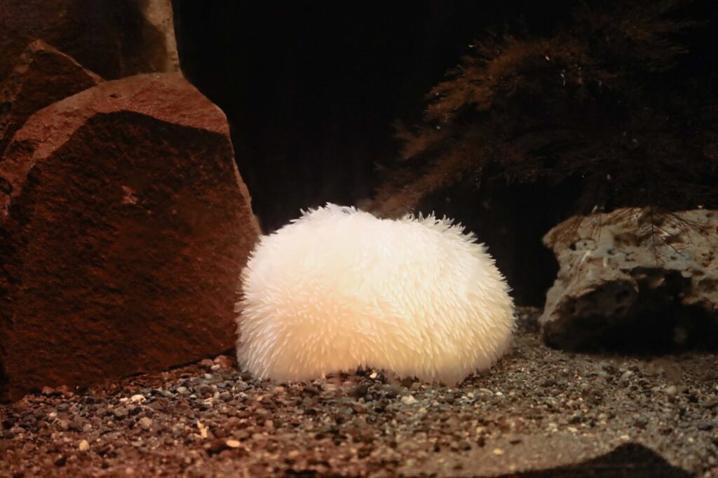 この水族館にはその他にも、メガマウス(剥製)、タカアシガニ、ダイオウグソクムシ、といった深海魚界のスターたちが所狭しと展示されている。